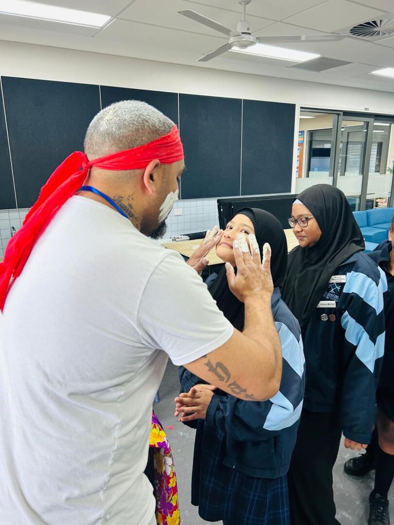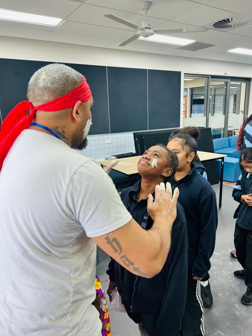 The second activity was artifacts. We learned about all the weapons they used like spears. The guy showed us what they used for communicating with others from a long distance, it was a rope that he whirled in a circle that made a cool sound. Aboriginal people did face painting, and what they used for face painting was ochre, they put some water in it, then it becomes a natural paint for your body. At the end of the artifact's activity, we got to get face painting.