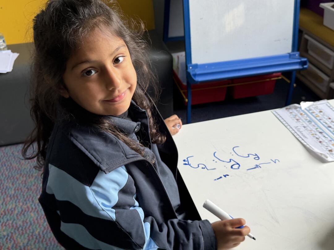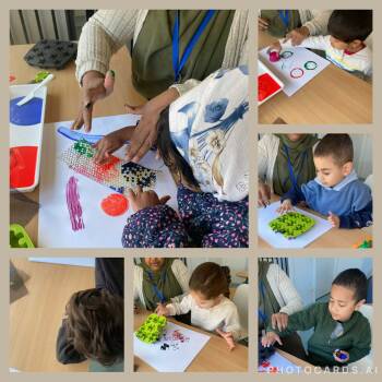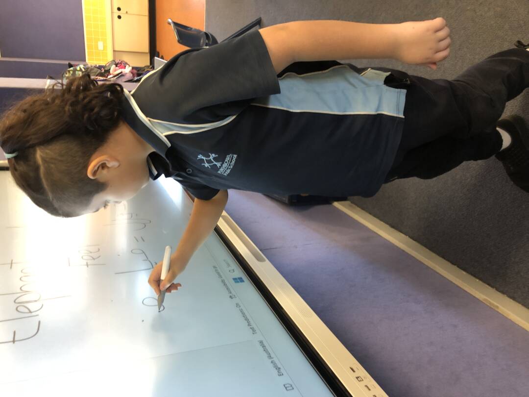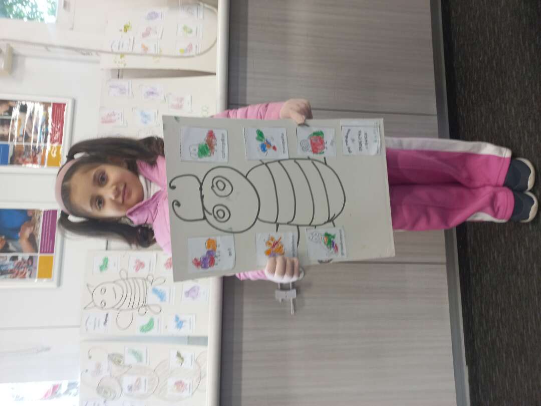 The last activity was art! Firstly, we waited in line, and we had to put our hands on this black, large canvas and she sprayed this white paint on top, after that we washed our hands. We used teamwork, creativity and focus to create this artwork.