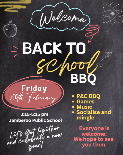 All Jamberoo Public School families are invited to our Welcome Back to School BBQ on Friday 20 February from 3:00–4:00 pm.