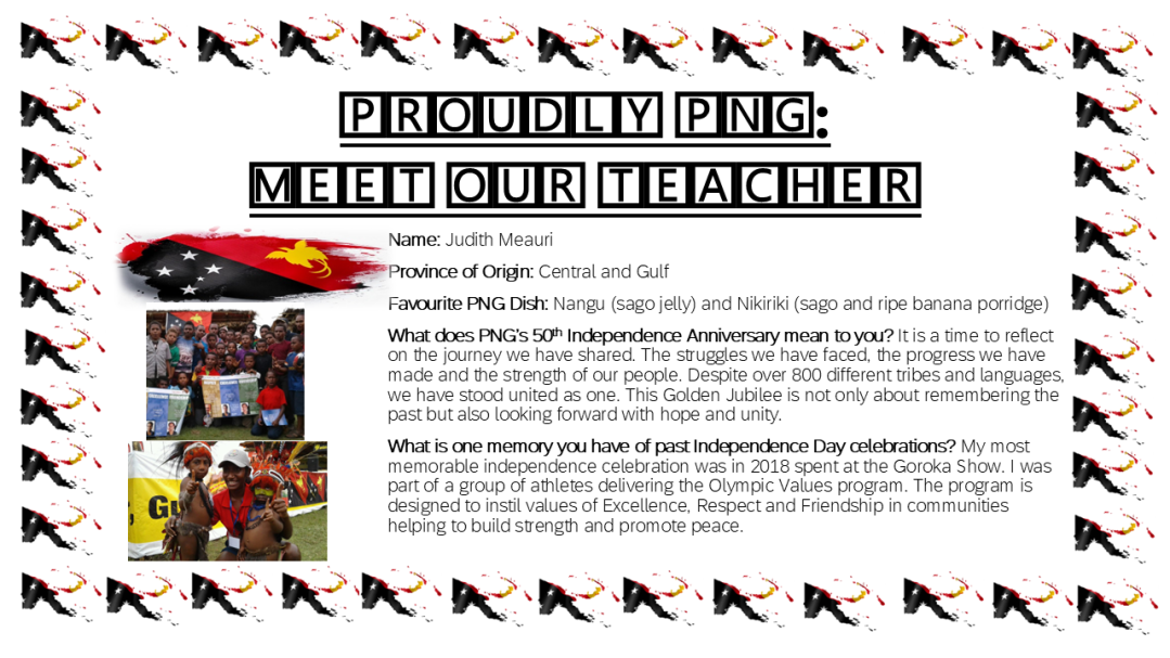 Students will attend school on the morning of Friday 12 September for a dress rehearsal of our Independence Day celebrations and then go home to rest from 11:00am. All students will then be required back at school to put on face paint and bilas (teachers will advise each class of times). A note for those participating in the bilas parade will go home outlining instructions for those students.