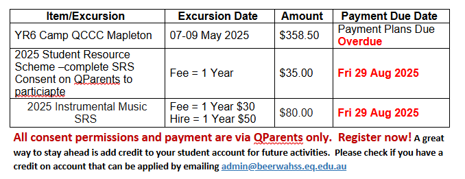 QParents also provides an efficient and effective way for parents to communicate with the school. Please refer to previous correspondence for further details on QParents on the Skoolbag/Audiri App.