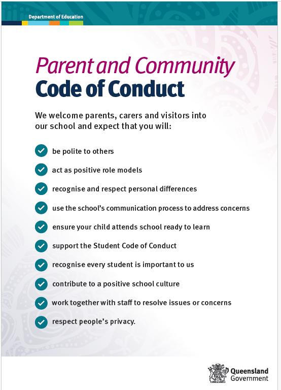 We welcome parents and other members of our diverse community into our school. Working together with the school community, school staff support the learning and wellbeing of every student, and are entitled to a safe work environment. Parents and other visitors to our school support safety by ensuring their communications and conduct at the school and school activities is respectful. Please read our Parent and Community Code of Conduct for more information.